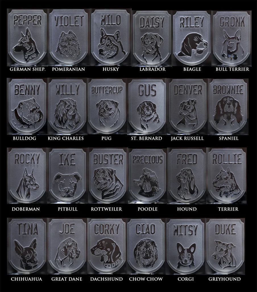 Choose your dogs' breed then personalize it with a name! We deeply carve the dog's image and your pet's name into the reclaimed and recycled blue wine bottle glass so you can enjoy your whiskey, bourbon, gin, vodka or scotch cocktails in style. Man's best friend cobalt blue recycled wine bottle glasses are the perfect gift for the dog lover or pet lover in your life. After all, who doesn't love the fur babies!